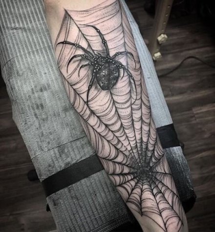 当前位置: 首页 >蜘蛛纹身图案>9张黑色的蜘蛛和蛛网纹身作品图案