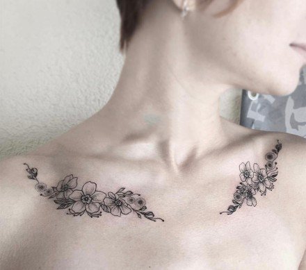 一组攀在锁骨处的花朵
