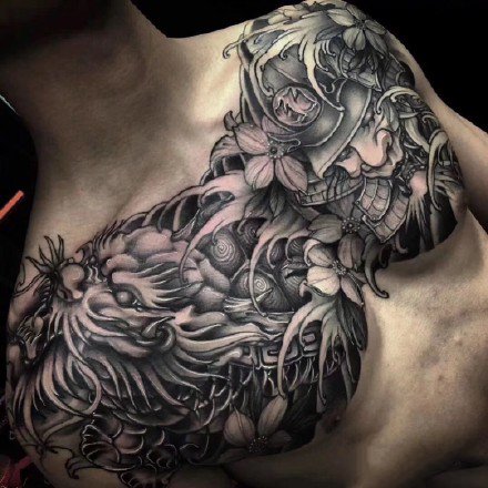 • 男性纹身花胸 男性胸前的9款黑色大花胸纹身图案