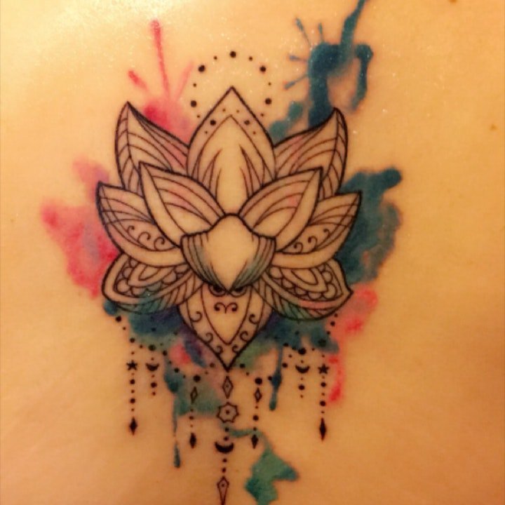 • 水彩莲花文身 9款水彩色的莲花纹身图片