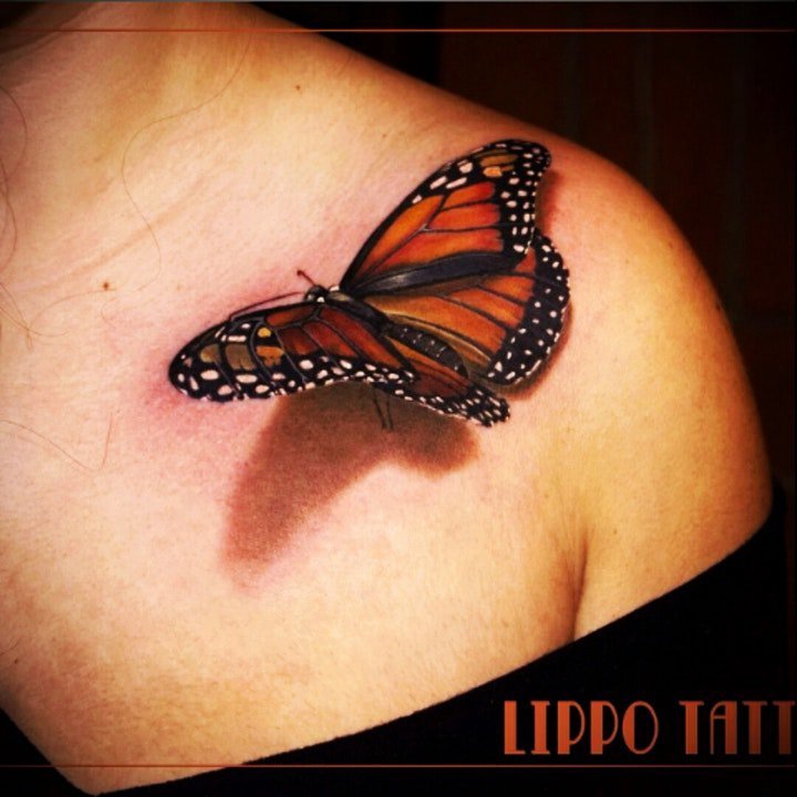 蝴蝶纹身图案 女生身上漂亮的立体蝴蝶纹身图案