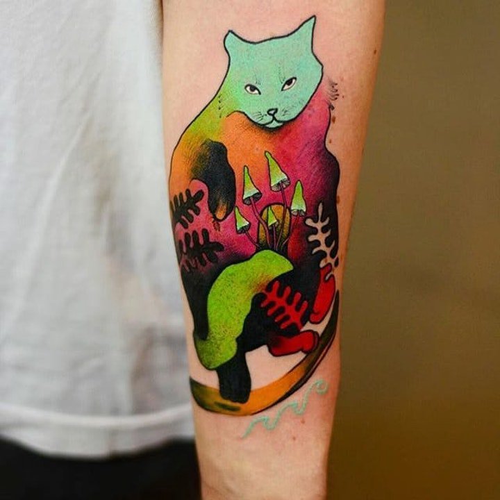 • 爱猫人士必入的一组彩色猫咪纹身图片