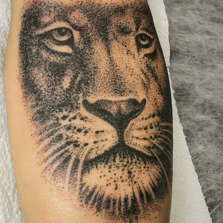 • 大臂上写实的9款雄狮狮子纹身图片作品