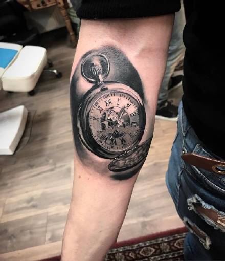 • 包大臂和小臂好看的9张钟表写实纹身图片