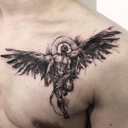 翅膀纹身 黑色的一组帅气点线翅膀主题纹身作品