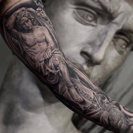 欧美宗教主题的一组包大臂写实纹身图片