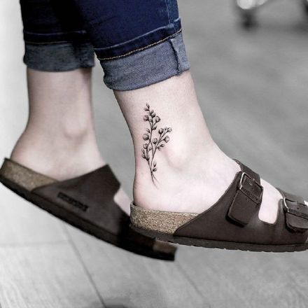脚踝处小清新的9张小花卉纹身图片