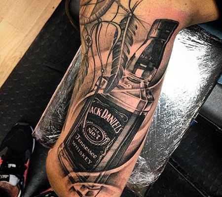大臂洋酒瓶纹身图案