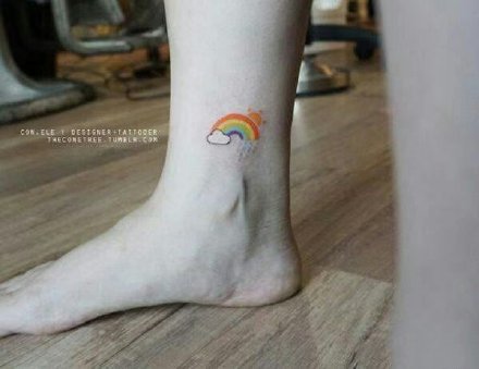 女生脚踝圆形彩虹小清
