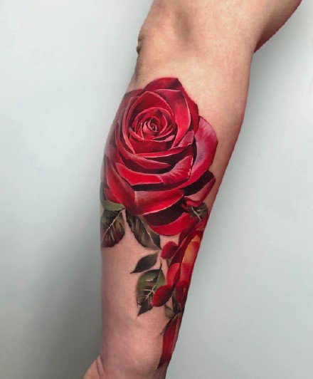 包臂包腿艳丽的16款红玫瑰纹身图案