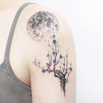 梅花和月亮搭配的一组小清新纹身图片