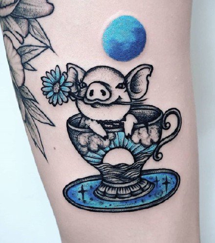 • new school茶杯小猪花蕊纹身图案手稿缩略频道推荐图