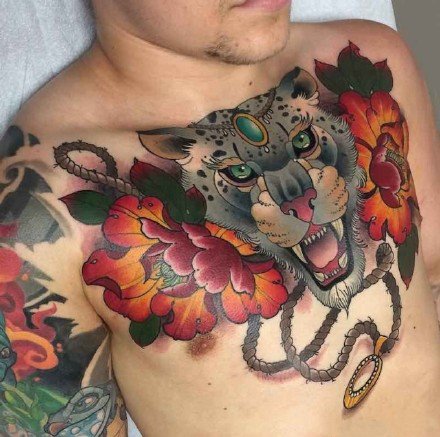 男士花胸纹身 28款男性胸前霸气的大花胸纹身团作品
