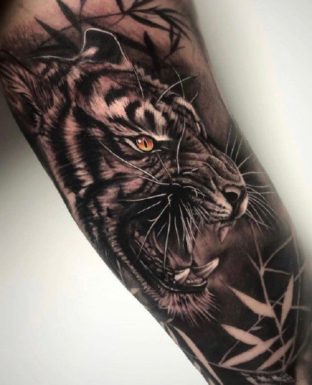 当前位置: 首页 >老虎纹身图案>一组黑灰写实风格的老虎纹身图案