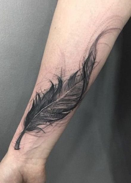 • 羽毛刺青 轻盈的9款黑灰色羽毛纹身图片