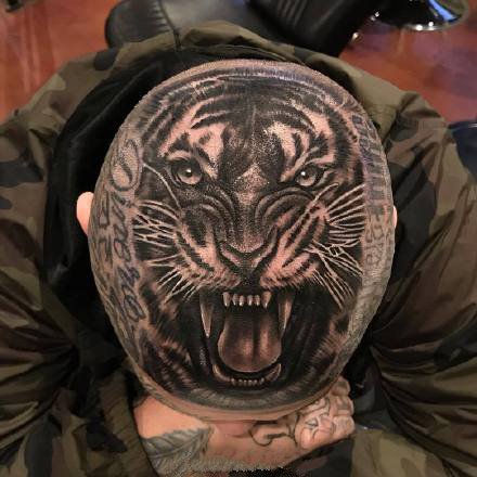 头部后面位置的几款超写实黑灰纹身作品