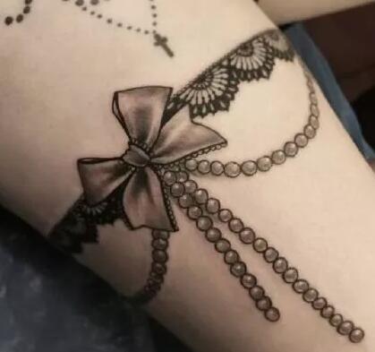 女性大腿上的15款性感蕾丝腿环纹身图案