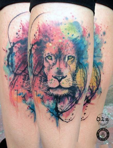 • 狮头纹身 好看的9款水彩色狮子头纹身图案