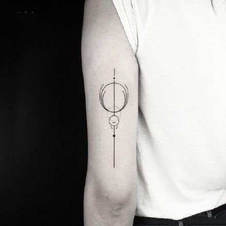 线和圆组成的一组极简几何图形纹身图片