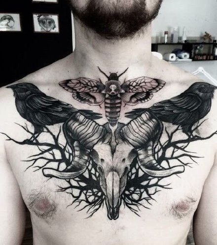 撒旦纹身 魔鬼撒旦的9款羊头大花胸纹身作品图案