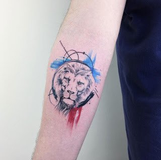 • 手臂内侧彩色狮子头纹身图片
