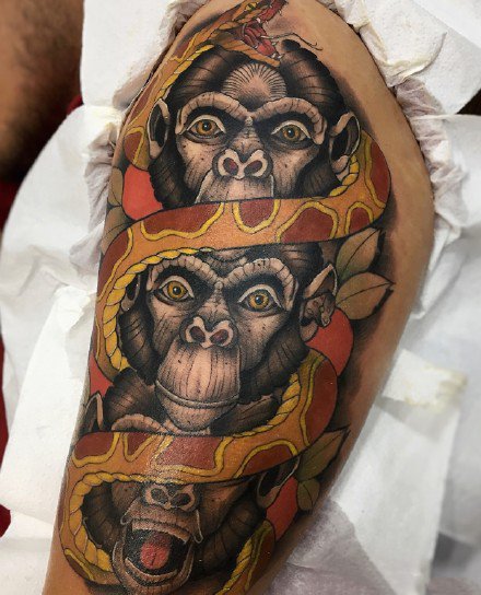 当前位置: 首页 >动物纹身图案>猩猩纹身 不同风格的一组9张猩猩猴子纹身图片