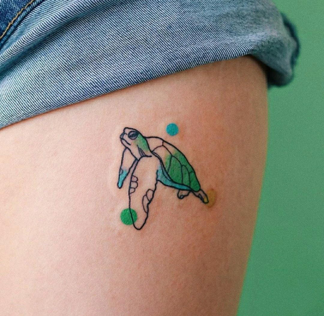 简单颜色点缀的一组线条纹身图片