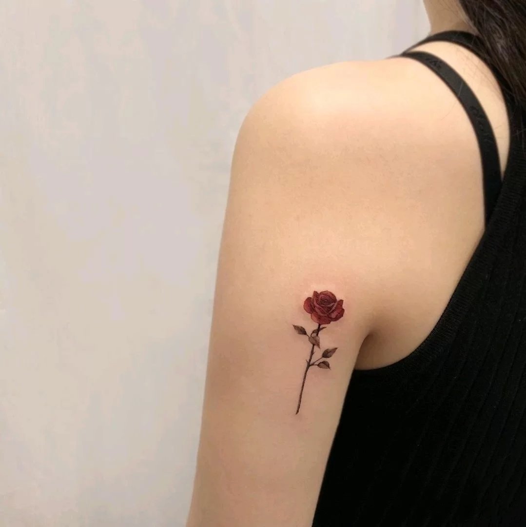 • 适合高冷女神的红色玫瑰花纹身图片9张