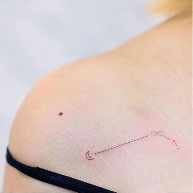 • 一组浅浅线条淡淡颜色的小清新纹身图片