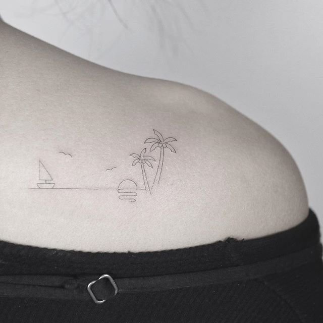 • 一组浅浅线条淡淡颜色的小清新纹身图片