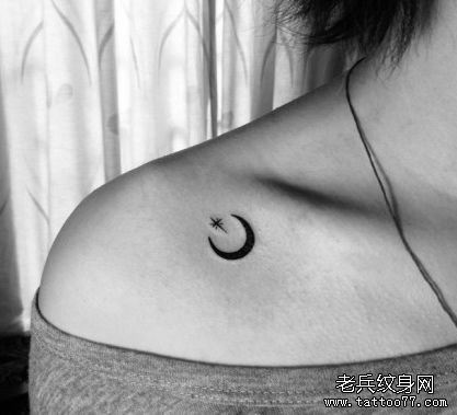 女孩子锁骨处图腾小月亮与星星纹身图案