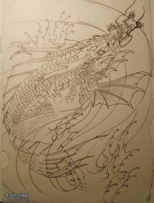一幅鳌鱼文身线稿文身作品由文身秀图吧分享