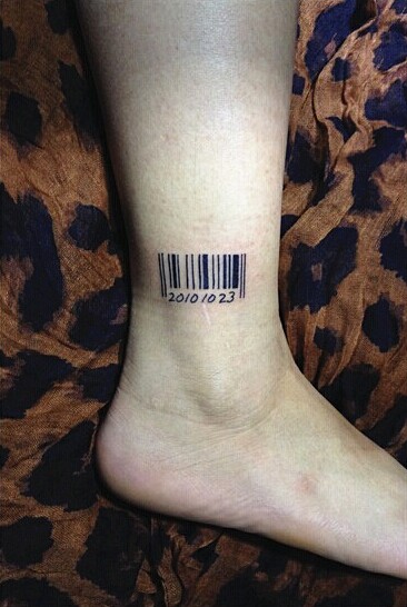 北京金凤堂纹身秀图吧作品:腿部条形码纹身
