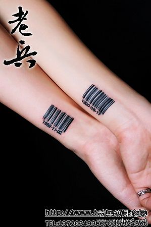 手臂条形码情侣纹身图
