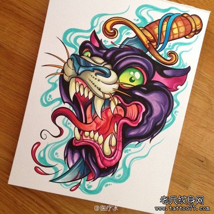 超帅霸气的一款豹头纹身手稿
