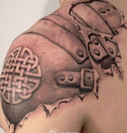 手臂纹身图案:手臂撕皮盔甲纹身图案