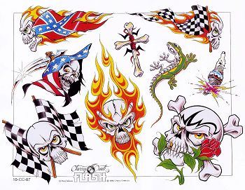 卡通骷髅玫瑰十字架骨头旗帜蜥蜴纹身图案