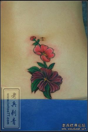 腹部纹身图案:美女腹部彩色花卉纹身图案