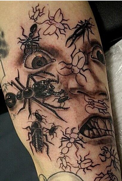 男生手臂经典好看的黑白蚂蚁纹身图