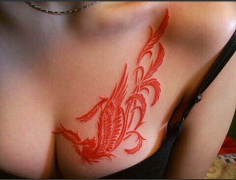 时尚美女胸部性感鸽子血火凤凰纹身图片