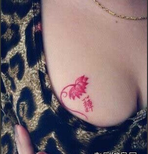 女生胸部鸽子血莲花纹身图图片
