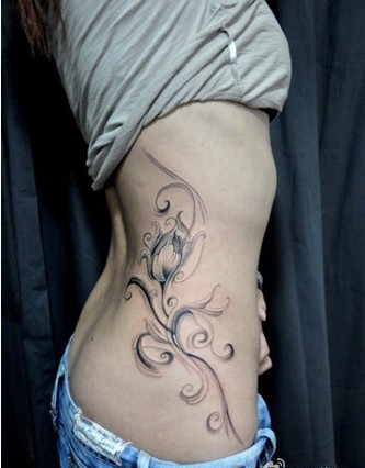 超萌MM腰部唯美好看的莲花藤蔓纹身图图片