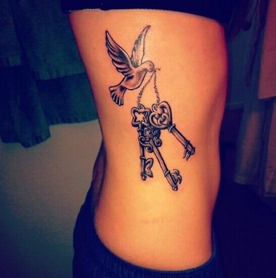推荐一款女性侧腰钥匙纹身图案图片
