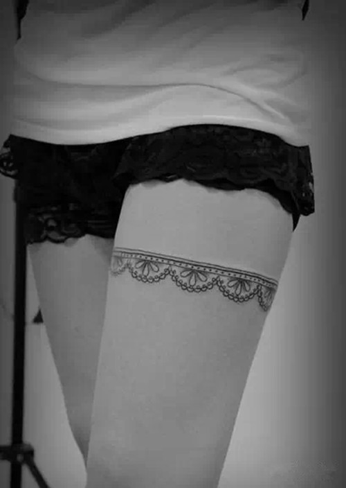 • 蕾丝纹身 性感的9款女性大腿上的蕾丝腿环纹身图片