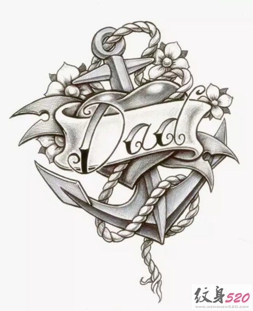 给力的船锚纹身手稿