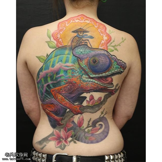 背部花蜥蜴纹身图案