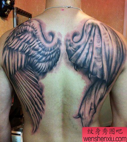 帅气的满背天使与恶魔的翅膀纹身图案