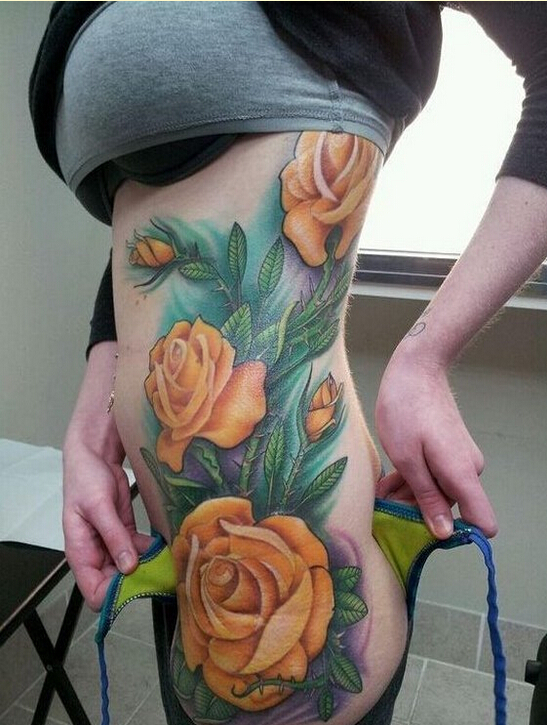 性感女性腰腹漂亮好看的玫瑰花纹身