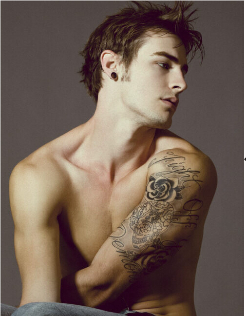 男生手臂个性的骷髅头纹身