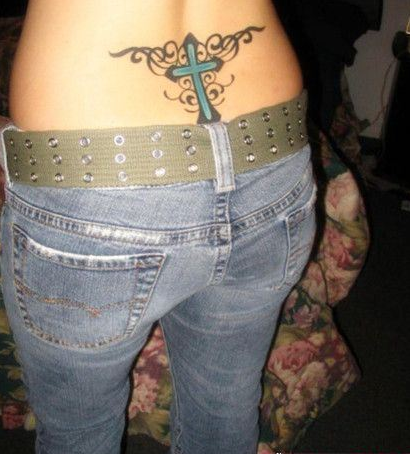 女性后腰漂亮的十字架纹身